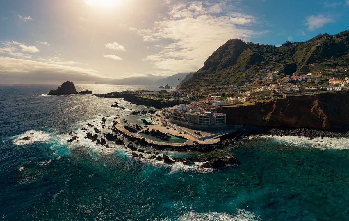 Porto Moniz is a small town located on the northwestern tip of Madeira Island, surrounded by the Atlantic Ocean on one side and steep, lush mountains on the other. Its most iconic attraction is the series of natural volcanic lava pools, where crystal-clear seawater creates a safe and picturesque swimming environment.